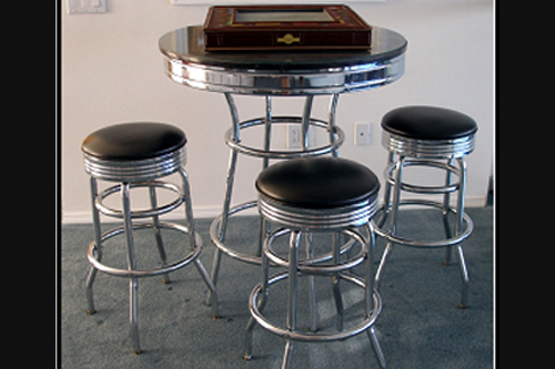 Cocktail tall tables and stools come both in black and red and can also be customized to your color palette. Price includes three stools and one tall table.
