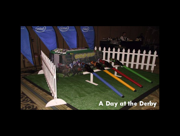 The faster the four players gallop their hobby horses, the faster the horses run on the track. At the end of the race, the winning horse’s lane will light up!