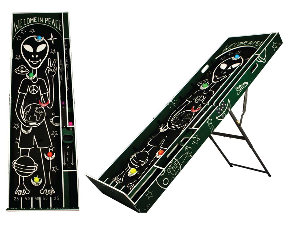 Enjoy our “out-of-this-world” pinball game. Pull a lever and watch as the multi-colored balls go racing through space. How many points can you land on?