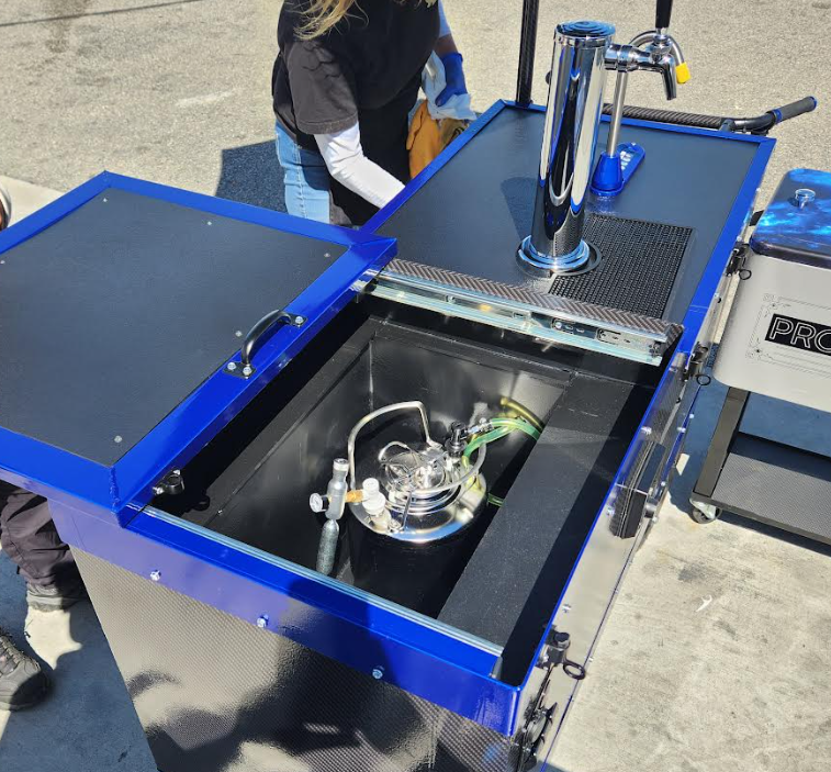 Rugged stylish bar, comes with two ice chests. Sink / Keg Area / Battery Powered