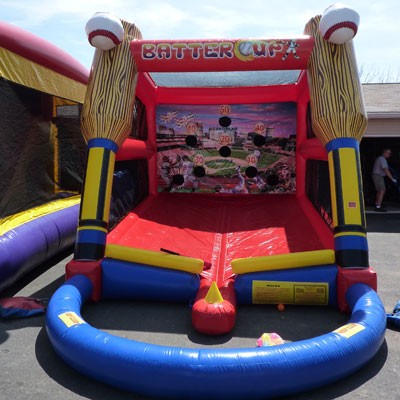 Users can step up to the plate and take part in batting practice as they hit baseballs into an enclosed “outfield.