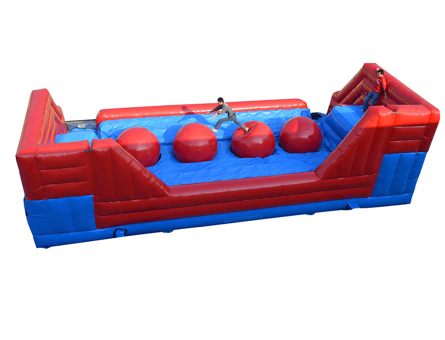 Have you ever wanted to try your skill on the big balls course on the TV show “Wipeout”? Well here is your chance! This fun new game features a series of four inflatable red balls which challengers must jump across to reach the other side. But don’t worry if you fall off with our state of the art padding!
