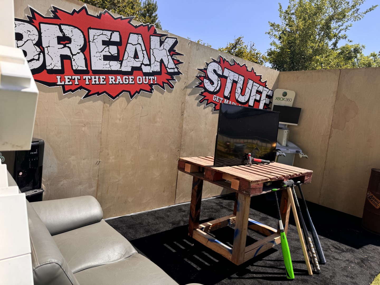 Transform your next event, corporate retreat, or just a tough day into a smashing success with our fully customizable mobile break room! This unique and therapeutic space offers a way to release stress and anger by breaking stuff—literally. Step into our specially designed setup where you can let loose, smash objects, and let all your rage and frustration out in a controlled and safe environment.