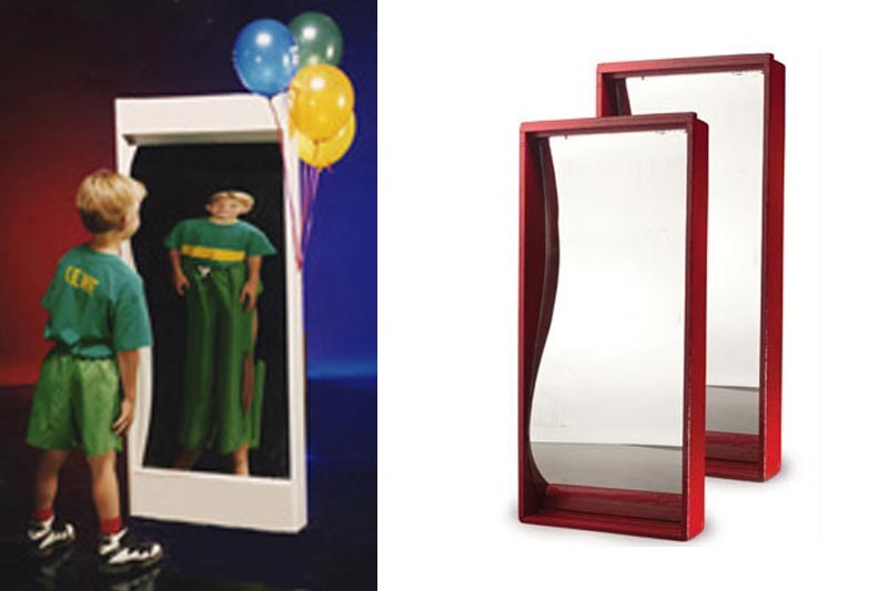 Wavy, funhouse-style mirrors, which will make you stretched, twisted, and bent. A totally different view of reality!