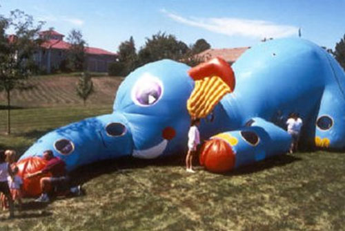 Ellie the Elephant is certain to be the major attraction at any event. Ellie is over 45 feet long, 20 feet high, and 20 feet wide. A wonderful adventure awaits the children when they enter through her trunk. The main play area features an elephant surrounded by fluffy white clouds, flying over the continent of Africa. The children can also play on Peanut Hill and in African Villages to their hearts’ content. Twenty children at a time is not too many kids for Ellie to swallow.