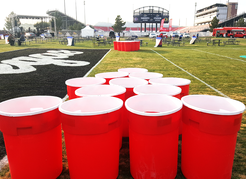 A big version of your typical beer pong game… but BIGGER CUPS and BIGGER BALLS!