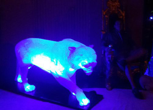 Life-sized acrylic ice tiger can be uplit with a colored light (blue looks amazing) for an awesome, moody effect.