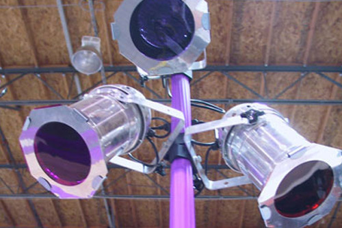Chrome 10′ trussing equipment with par cans. Perfect for any event. We carry a full line of par cans and gels. Custom gobos are also available.