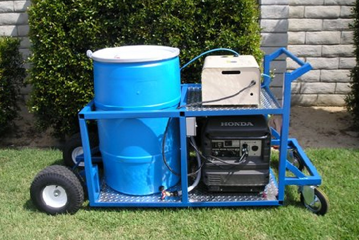 This is another imagination to fabrication. PartyWorks has designed a mobile self-contained fogging unit. Water, power, and pump all travel on one grass-friendly dolly. This high-pressured fogging unit can last up to four hours, pushing fog through nozzles at 800 psi. EXCLUSIVE to PartyWorks!