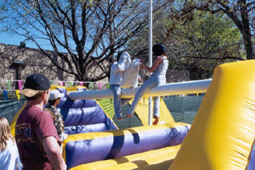 A new twist on an old favorite. Two competitors climb onto the padded pole and using a specially designed pillow try to knock each other off. Nothing could be simpler or more fun. Another PartyWorks exclusive design.