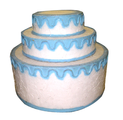 Size: Measurements: Top to Bottom is 4′ the top of the cake ring is 2’2″ bottom ring is 4’5 , middle layer 3’9