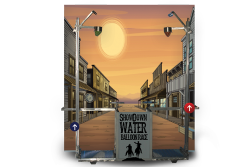 One-on-one competition where the loser is going to get wet! The race is won by spinning your control disc. The disc operates your moving icon. The faster you spin, the faster your icon travels up to your opponent’s water balloon.