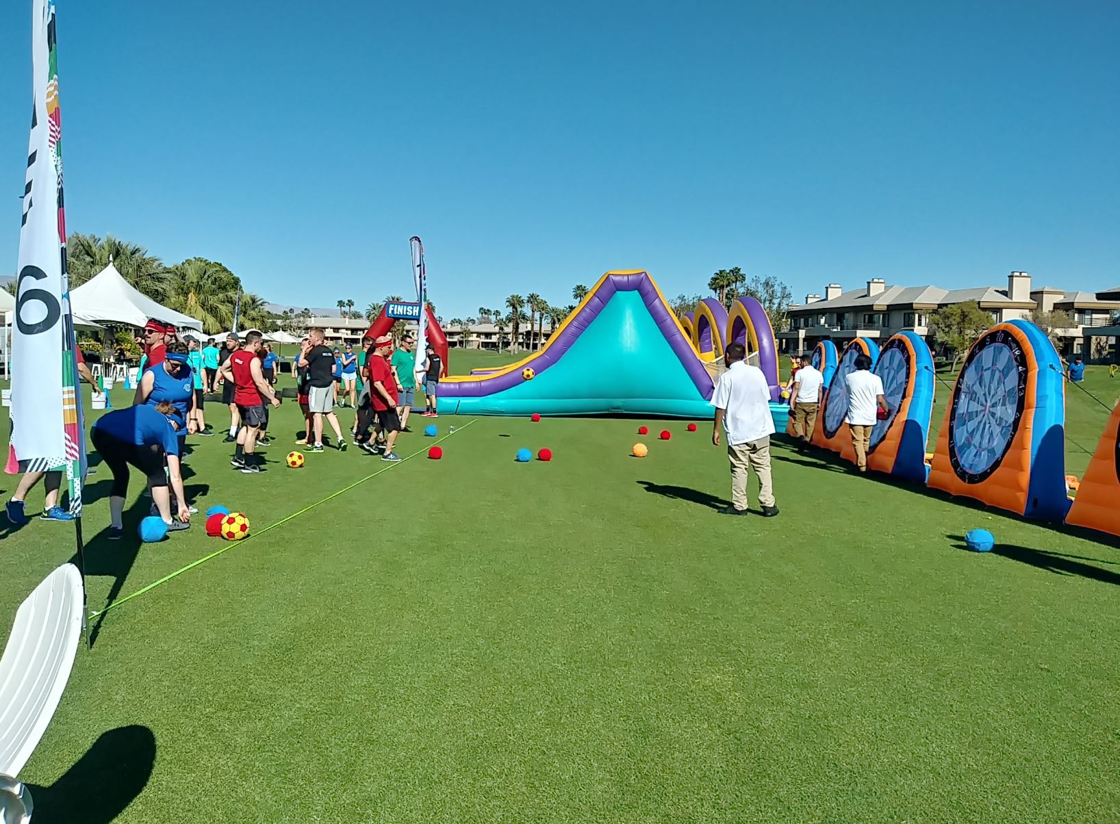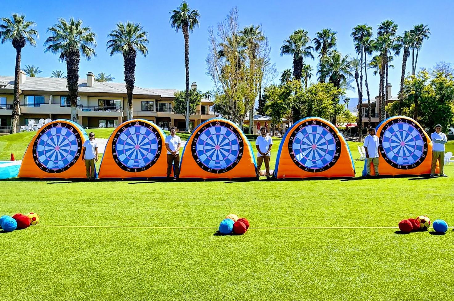 Kick the ball at the target with all of your might and it’ll stick where it lands to help keep track of your score