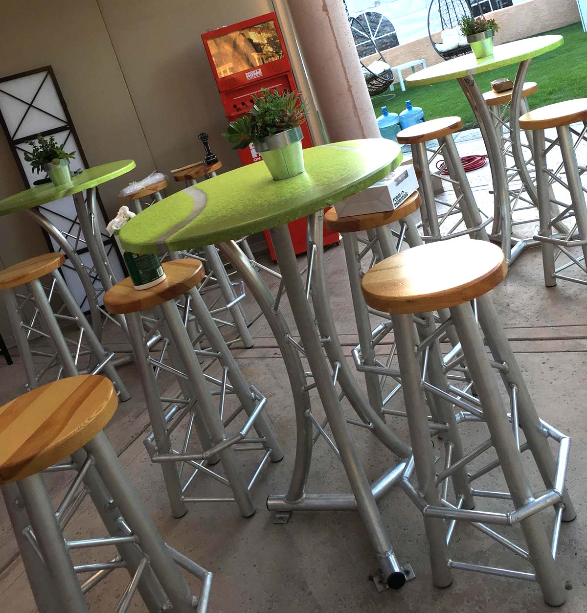 Tennis branded cocktail tables — Looking for another sport? No problem…